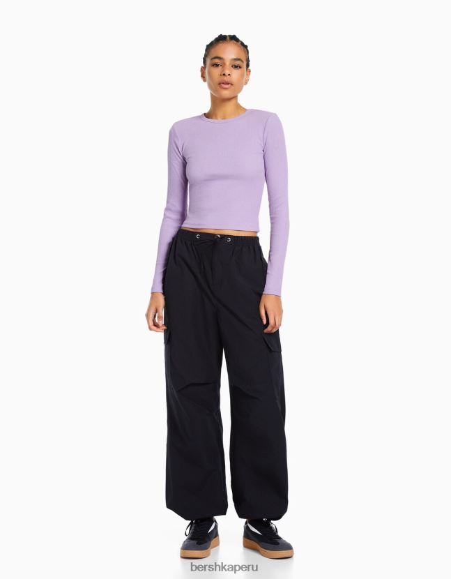 Violeta Bershka mujer camiseta de manga larga de canalé 806J6B574